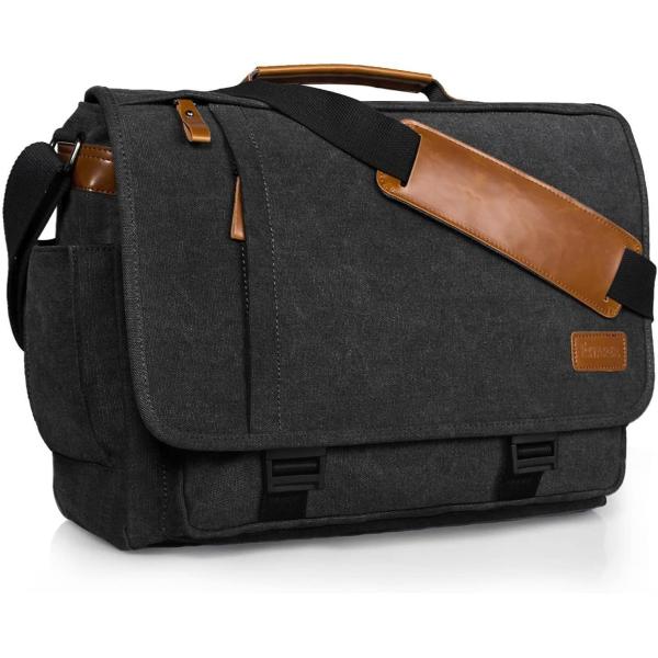 ESTARER MEN MESSENGER BAG 15.6 INCH, WATER-RESISTANT CANVAS COMPUTER BAG WORK BAG, LAPTOP SHOULDER BAG BRIEFCASE SATCHEL Images |